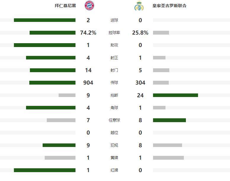 本赛季表现神勇的卡尔,在第39分钟人球分过杀入圣吉罗斯联合禁区,随后被防守球员拉拽倒地,但主裁判没有任何表示,1分钟之后,拜仁右侧角球开出,格雷罗前点甩头攻门,但皮球稍稍高出横梁,双方带着0-0的比分,回到了中场更衣室。