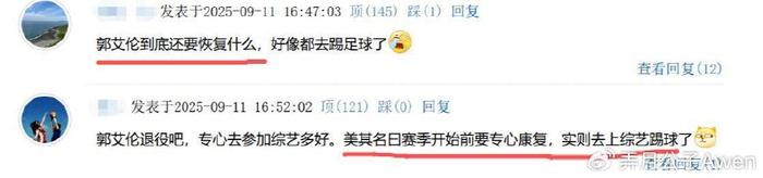 这边不归队合练,那边的东北明星足球赛,郭艾伦则是现身绿茵场,并且秀了一把自己运球突破到门前的好戏,这也引起了球迷的热议:“郭艾伦到底要恢复什么,好像都去踢足球了”、“综艺是主业、打球是副业”、“退役吧,专心参加综艺多好,美其名曰赛季开始前要专心康复,实则去上综艺踢球。”